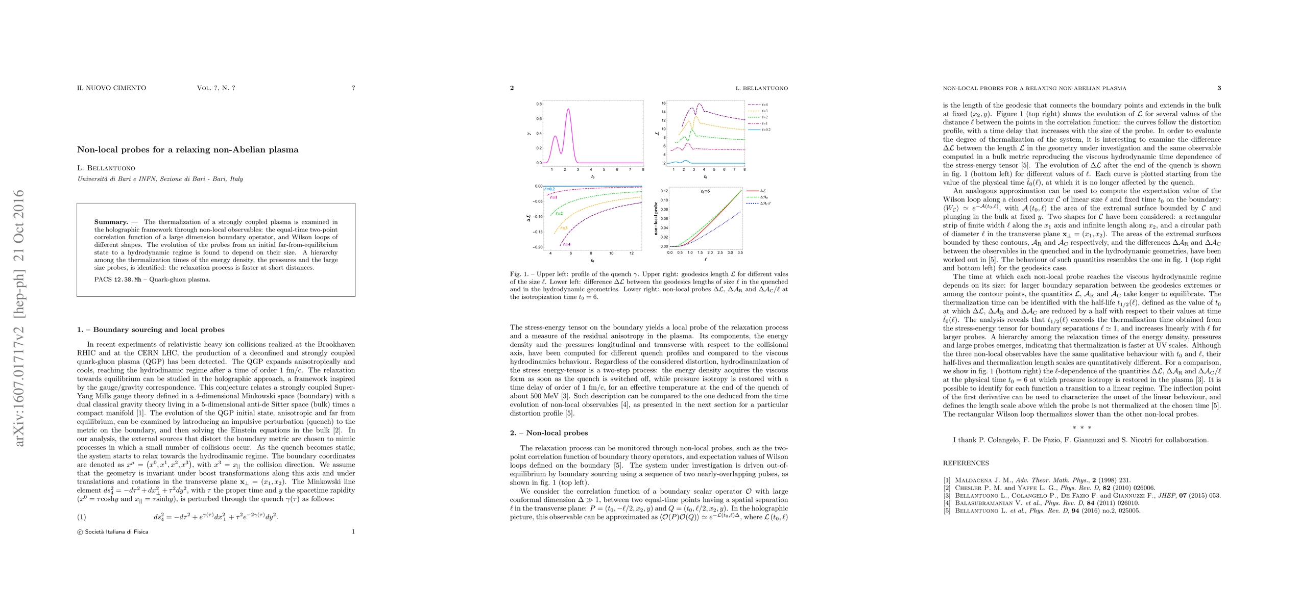 This paper investigates the thermalization of a strongly coupled non-Abelian plasma using holographic methods, focusing on non-local probes like boundary operators and Wilson loops. The study reveals that thermalization times vary with probe size, being faster for shorter distances.