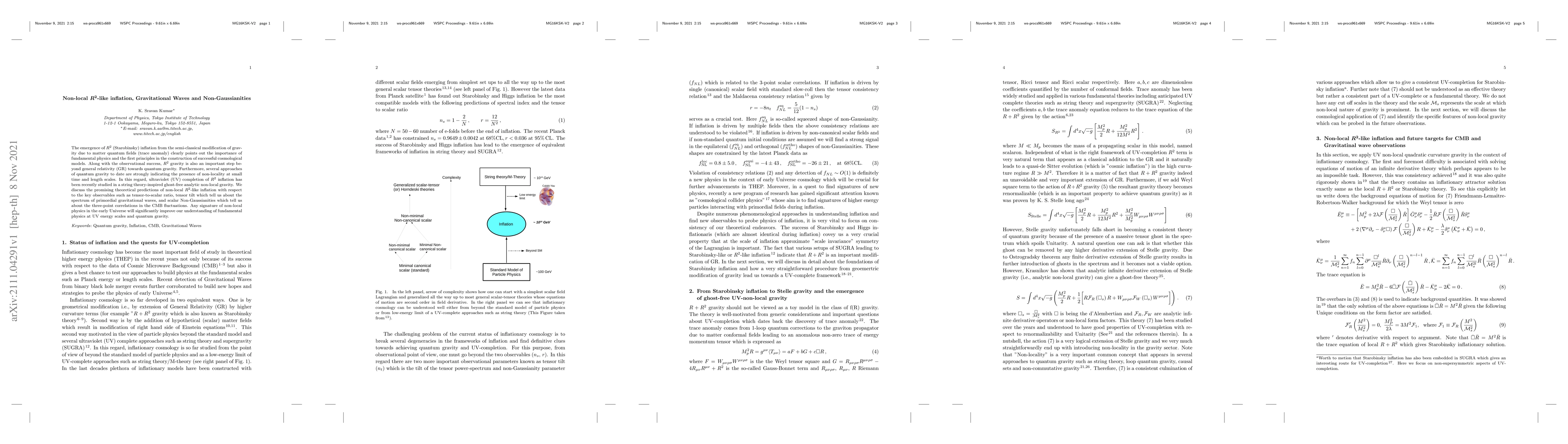 This paper discusses non-local R^2-like inflation in cosmology, its connection to gravitational waves and non-Gaussianities, and how it may improve our understanding of fundamental physics and quantum gravity.