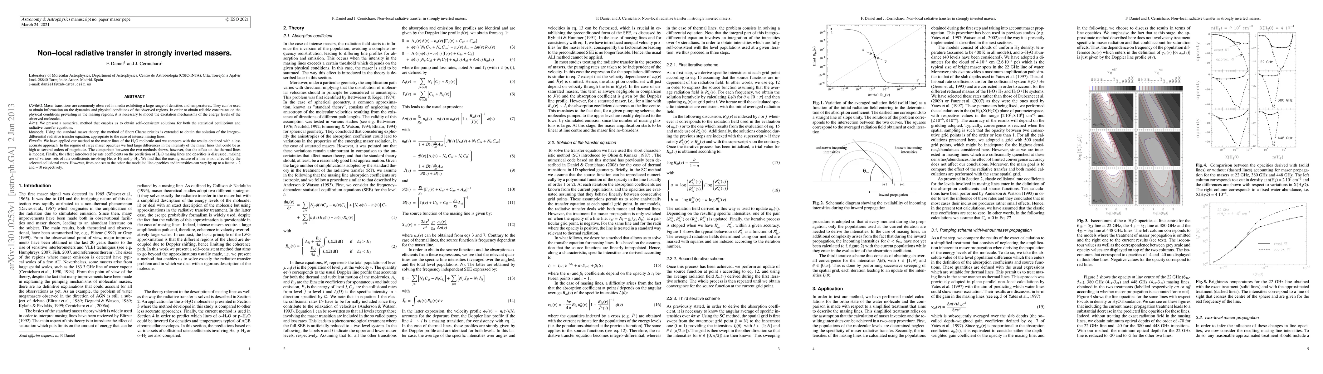 Maser transitions are commonly observed in media exhibiting a large range of densities and temperatures. They can be used to obtain information on the dynamics and physical conditions of the observed regions. In order to obtain reliable constraints on the physical conditions prevailing in the masing regions, it is necessary to model the excitation mechanisms of the energy levels of the observed molecules. We present a numerical method that enables us to obtain self-consistent solutions for both the statistical equilibrium and radiative transfer equations. Using the standard maser theory, the method of Short Characteristics is extended to obtain the solution of the integro-differential radiative transfer equation, appropriate to the case of intense masing lines. We have applied our method to the maser lines of the H2O molecule and we compare with the results obtained with a less accurate approach. In the regime of large maser opacities we find large differences in the intensity of the maser lines that could be as high as several orders of magnitude. The comparison between the two methods shows, however, that the effect on the thermal lines is modest. Finally, the effect introduced by rate coefficients on the prediction of H2O masing lines and opacities is discussed, making use of various sets of rate coefficients involving He, o-H2 and p-H2. We find that the masing nature of a line is not affected by the selected collisional rates. However, from one set to the other the modelled line opacities and intensities can vary by up to a factor ~2 and ~10 respectively.