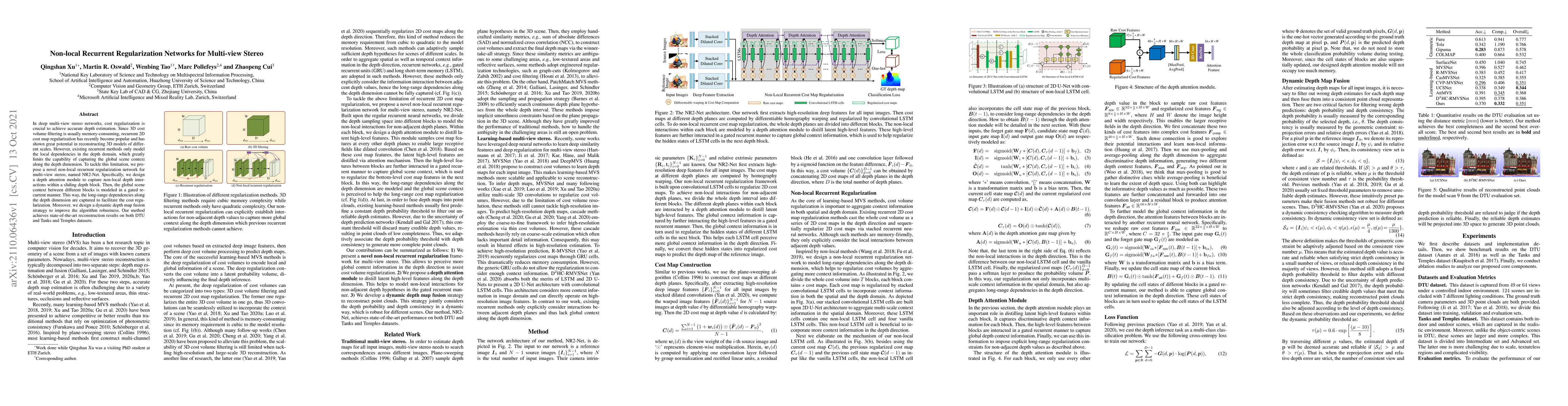 A new deep learning approach, NR2-Net, improves multi-view stereo reconstruction by capturing global scene context along the depth dimension, achieving state-of-the-art results on key datasets.
