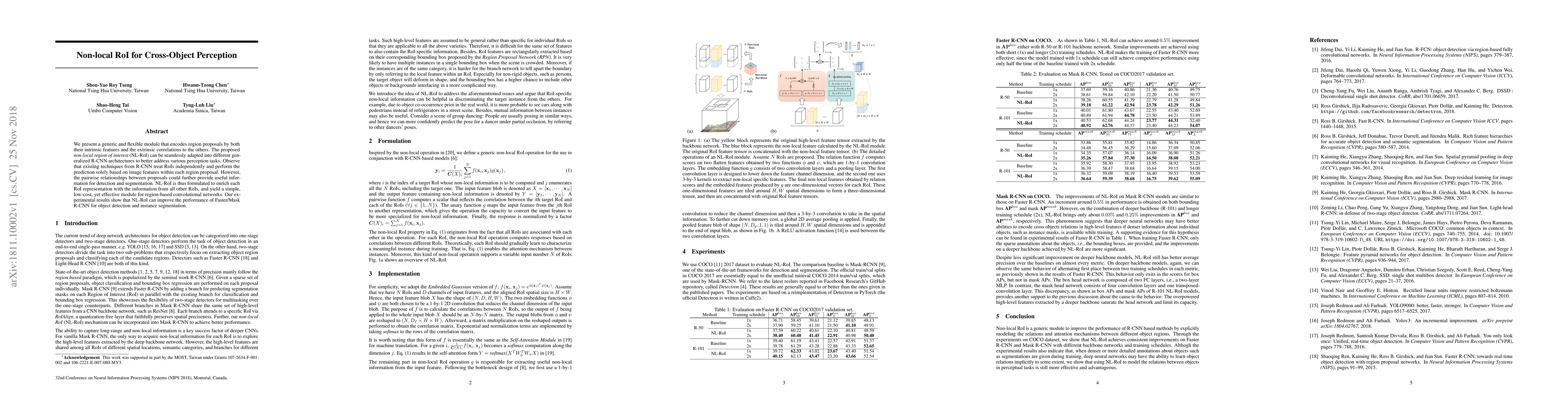 This research introduces a novel non-local region of interest (NL-RoI) module that enhances region proposals by incorporating both intrinsic features and extrinsic correlations with other regions. This module can be integrated into various generalized R-CNN architectures to improve perception tasks, offering a simple yet effective method to leverage pairwise relationships between region proposals for better detection and segmentation.