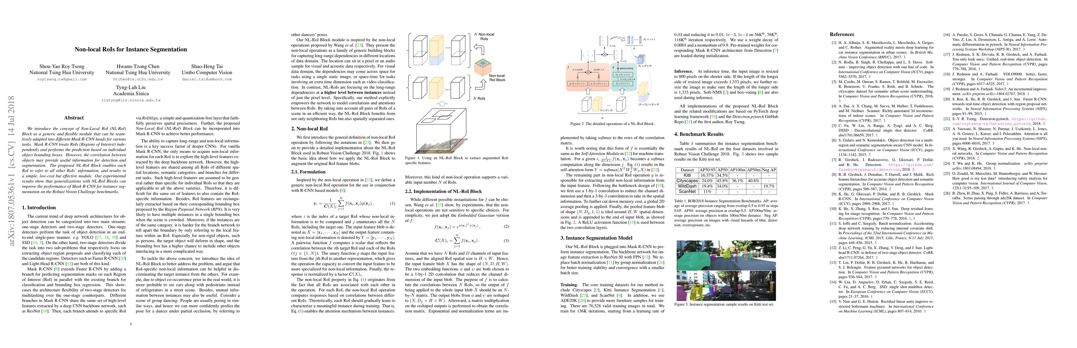 Researchers introduced a new module called Non-Local RoI Block that helps improve instance segmentation in Mask R-CNN by considering correlations between objects, leading to better performance on benchmark datasets.