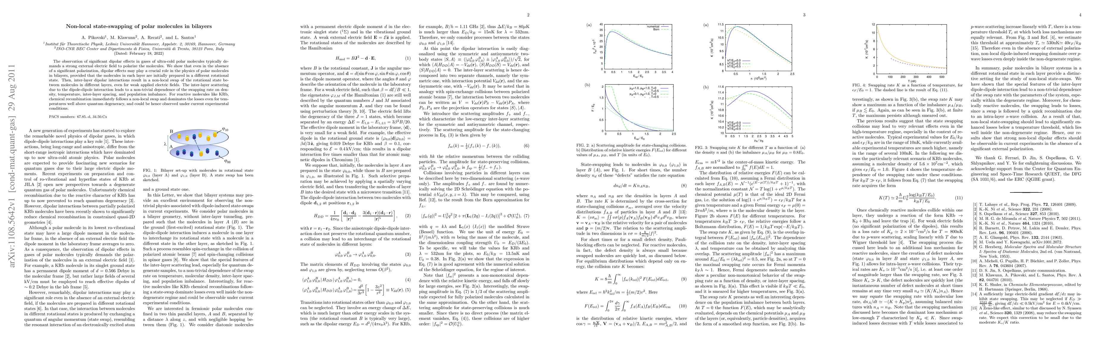 This paper demonstrates that dipolar interactions in bilayers of ultra-cold polar molecules can induce a non-local state-swapping of rotational states between layers without significant external polarization, leading to chemical recombination and observable losses under current experimental conditions. The swapping rate is influenced by density, temperature, inter-layer spacing, and population imbalance.