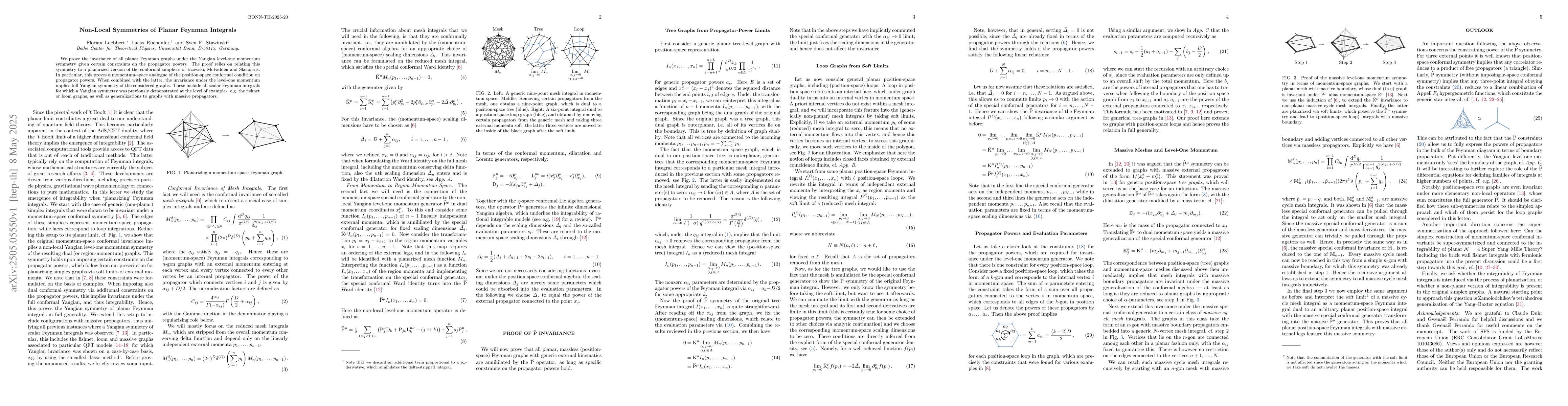 The research proves the invariance of planar Feynman graphs under the Yangian level-one momentum symmetry using constraints on propagator powers, linking this symmetry to a planarized version of conformal simplices.