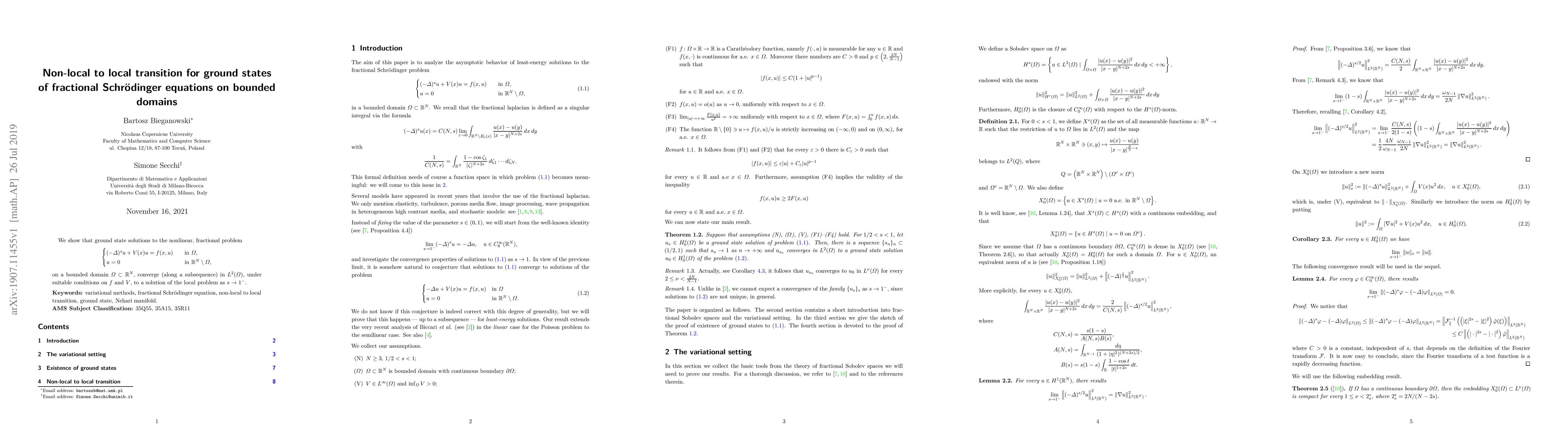 The work extends previous results by demonstrating the non-local to local transition for ground states in a more general setting, including variable coefficient potentials and specific growth conditions on the nonlinearity.