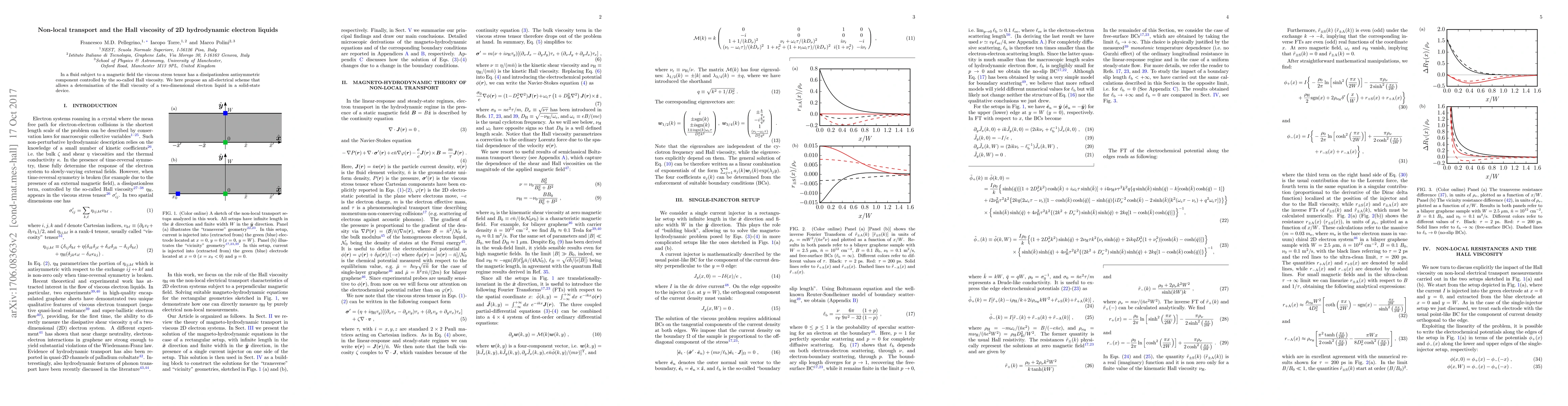 Summary: This paper proposes an all-electrical method to determine the Hall viscosity in two-dimensional electron liquids, revealing a dissipationless antisymmetric component in the viscous stress tensor of fluids under a magnetic field. This approach offers insights into non-local transport phenomena in solid-state devices.