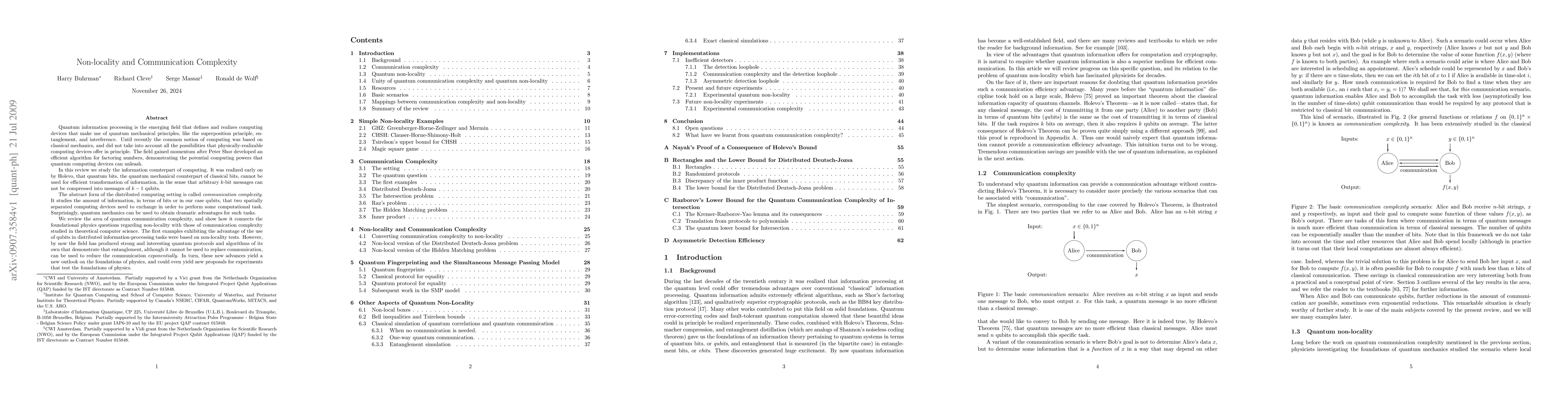 This paper reviews quantum communication complexity, demonstrating how quantum mechanics can significantly reduce the information exchange needed for distributed computing tasks compared to classical methods. It highlights the connection between foundational physics questions on non-locality and theoretical computer science, showing that entanglement can exponentially decrease communication needs.
