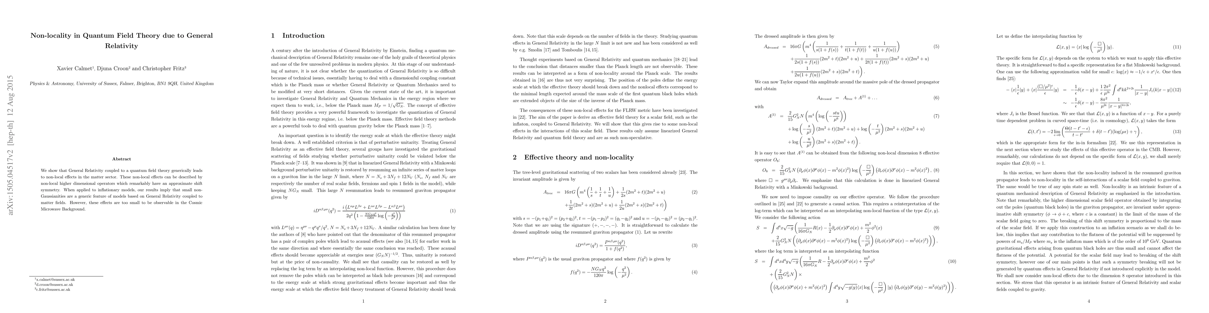 Summary: This paper demonstrates that General Relativity coupled with quantum field theory leads to non-local effects characterized by higher-dimensional operators with approximate shift symmetry, resulting in small non-Gaussianities in inflationary models, though these effects remain undetectable in the Cosmic Microwave Background.