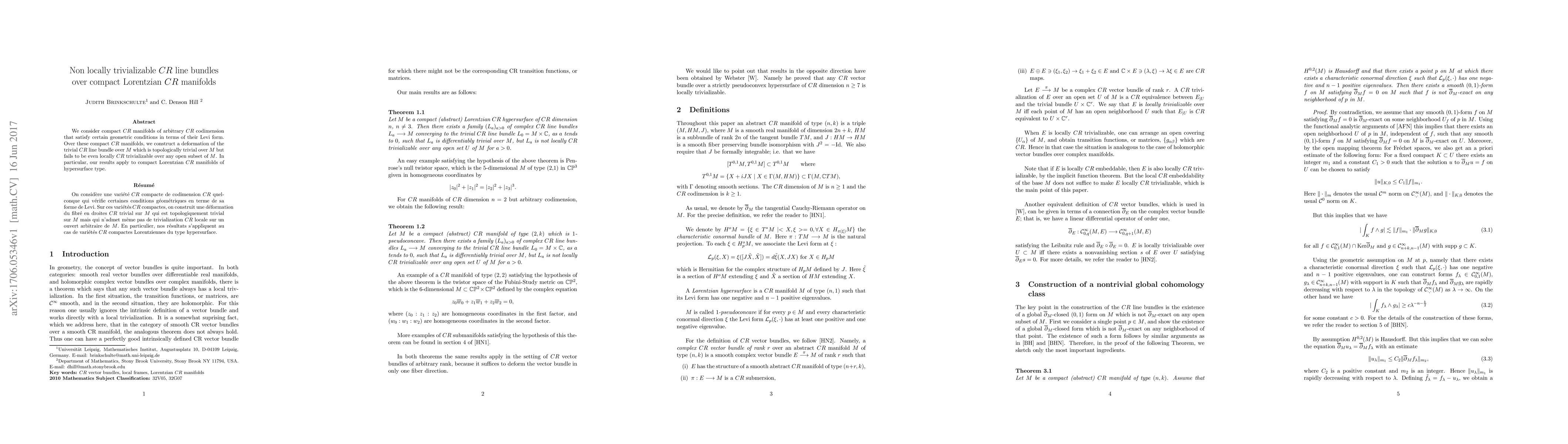 We consider compact $CR$ manifolds of arbitrary $CR$ codimension that satisfy certain geometric conditions in terms of their Levi form. Over these compact $CR$ manifolds, we construct a deformation of the trivial $CR$ line bundle over $M$ which is topologically trivial over $M$ but fails to be even locally $CR$ trivializable over any open subset of $M$. In particular, our results apply to compact Lorentzian $CR$ manifolds of hypersurface type.