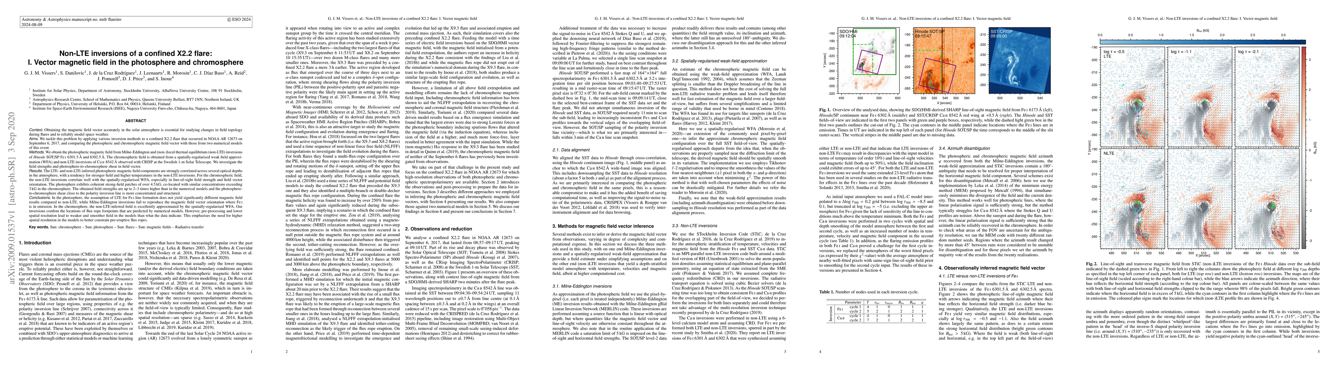This paper investigates the magnetic field vector in the solar atmosphere during a confined X2.2 flare using non-LTE inversions, comparing photospheric and chromospheric fields from observations and numerical models. The study finds that non-LTE inversions reveal stronger and more structured magnetic fields than models, highlighting the need for higher spatial resolution in numerical simulations to better predict flare dynamics.