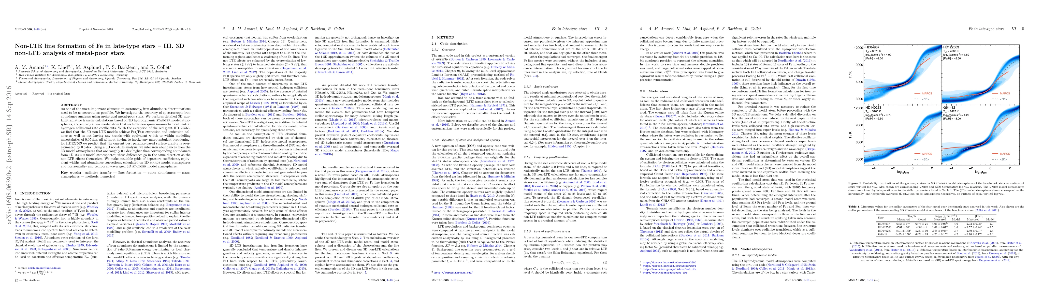 This paper investigates the accuracy of iron abundance determinations in metal-poor stars using 3D non-LTE radiative transfer calculations. The study finds that 3D non-LTE models achieve better Fe i/Fe ii balance and higher iron abundances by approximately 0.1 dex compared to 1D models, except for HD122563 where the surface gravity may be overestimated.