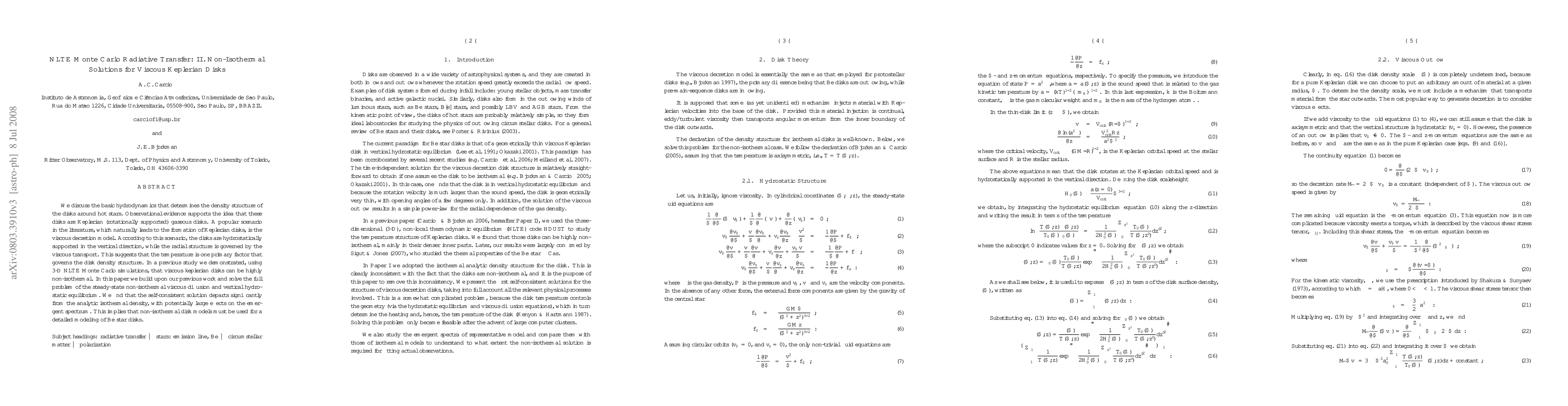 We discuss the basic hydrodynamics that determines the density structure of the disks around hot stars. Observational evidence supports the idea that these disks are Keplerian (rotationally supported) gaseous disks. A popular scenario in the literature, which naturally leads to the formation of Keplerian disks, is the viscous decretion model. According to this scenario, the disks are hydrostatically supported in the vertical direction, while the radial structure is governed by the viscous transport. This suggests that the temperature is one primary factor that governs the disk density structure. In a previous study we demonstrated, using 3-D NLTE Monte Carlo simulations, that viscous keplerian disks can be highly non-isothermal. In this paper we build upon our previous work and solve the full problem of the steady-state non-isothermal viscous diffusion and vertical hydrostatic equilibrium. We find that the self-consistent solution departs significantly from the analytic isothermal density, with potentially large effects on the emergent spectrum. This implies that non-isothermal disk models must be used for a detailed modeling of Be star disks.