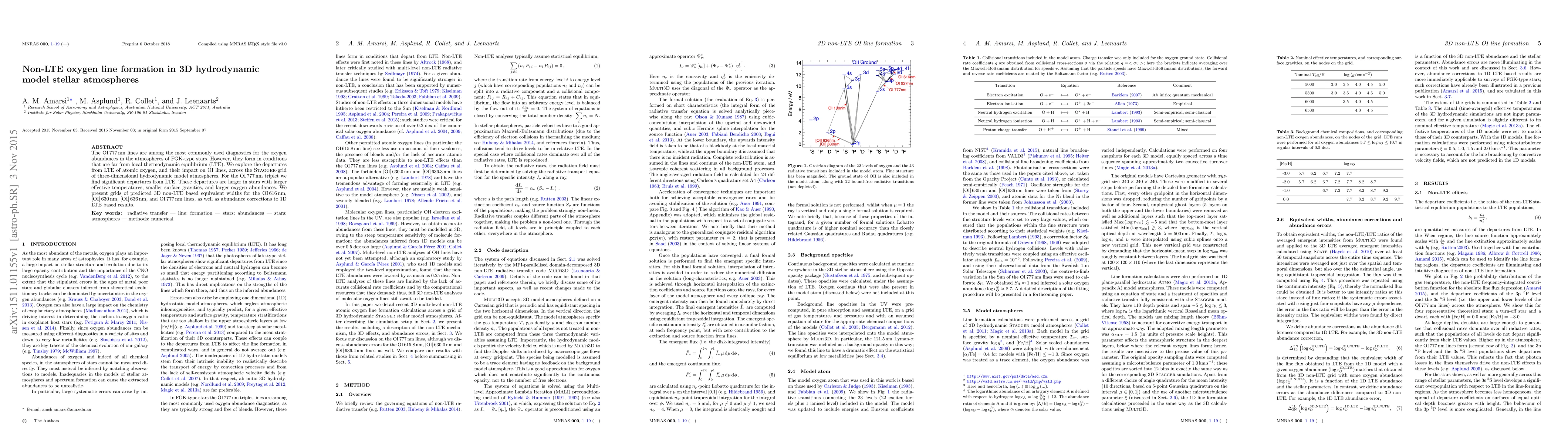 Research finds that oxygen line formation in stars deviates significantly from local thermodynamic equilibrium, affecting estimates of oxygen abundance, particularly at higher temperatures and surface gravities.