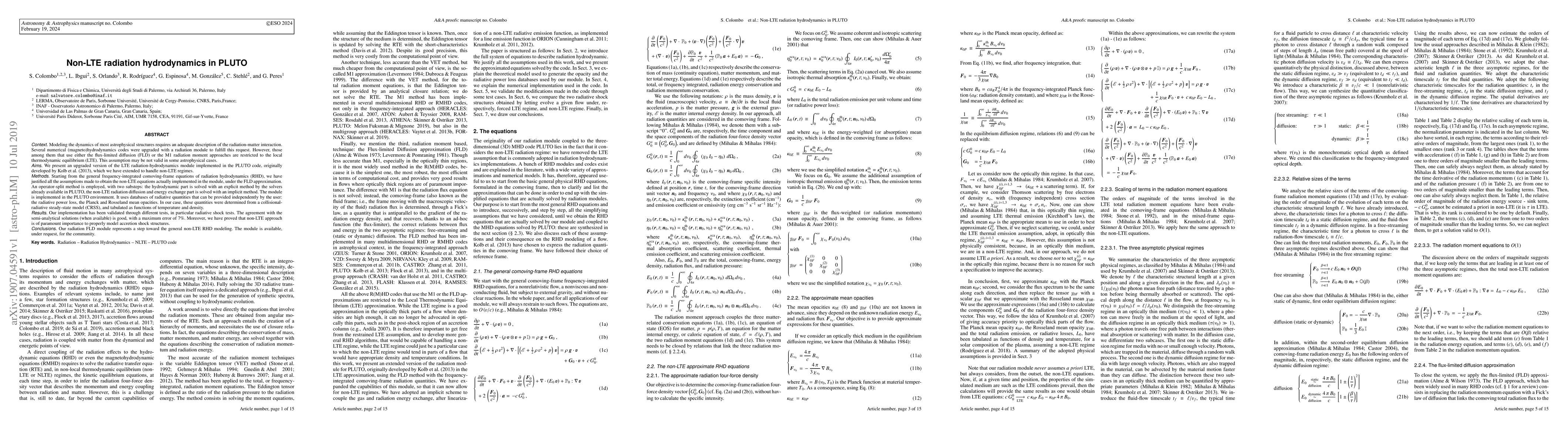 This paper presents an upgraded version of the radiation-hydrodynamics module in the PLUTO code, now capable of handling non-LTE regimes. The module employs an operator-split method to solve hydrodynamic and non-LTE radiation diffusion parts, validated through radiative shock tests, showing the importance of non-LTE modeling for accretion shock structures.