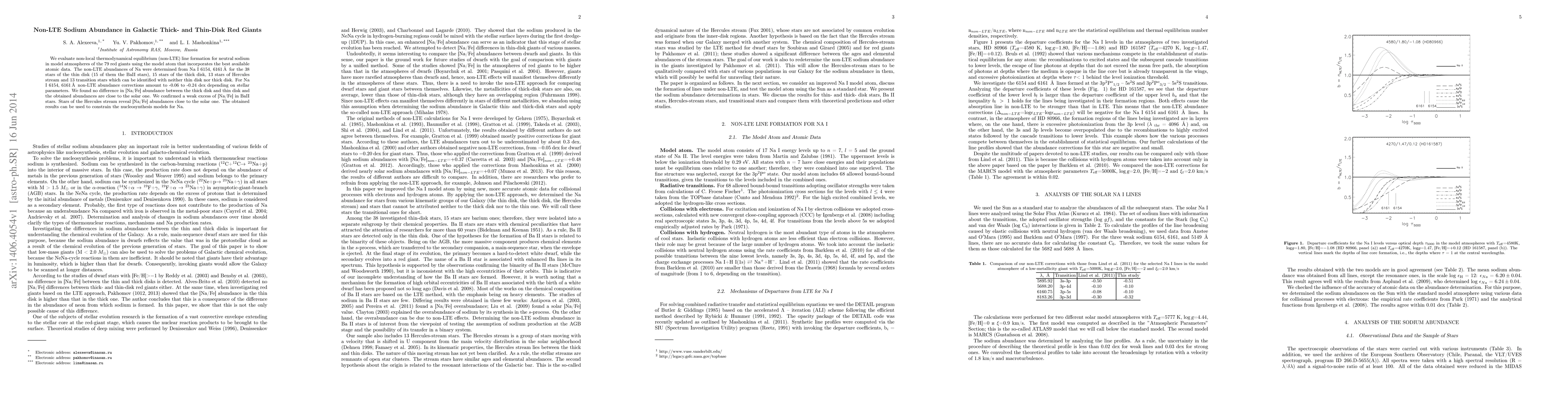 This study evaluates non-LTE sodium abundances in 79 red giants from various galactic disks using advanced atomic data, finding no significant difference in [Na/Fe] between thick and thin disks but confirming a weak excess in BaII stars. The results provide valuable data to refine nucleosynthesis models for sodium.