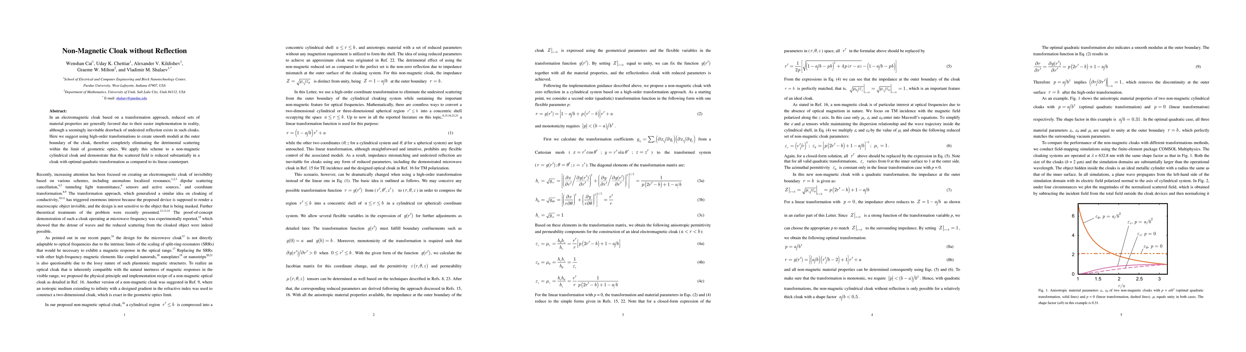 Researchers developed a non-magnetic cloak that reduces scattered fields without reflection using high-order transformations, outperforming its linear counterpart.