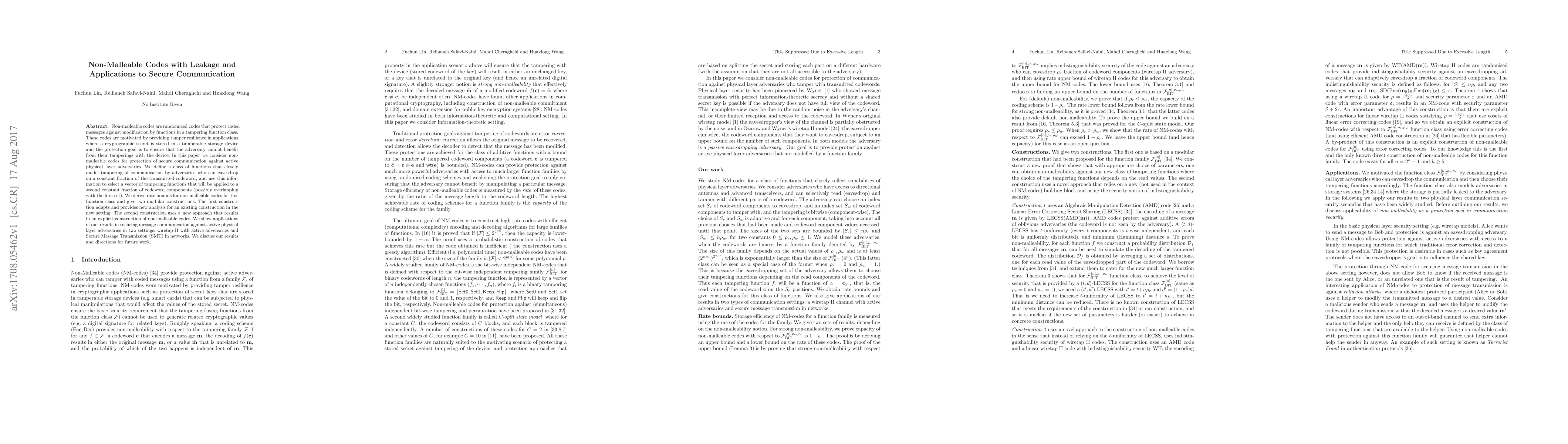 This paper develops non-malleable codes to secure communication against active physical layer adversaries who can leak and tamper with a fraction of the transmitted codeword. It presents two constructions for these codes and applies them to secure message transmission in wiretap II and Secure Message Transmission settings.