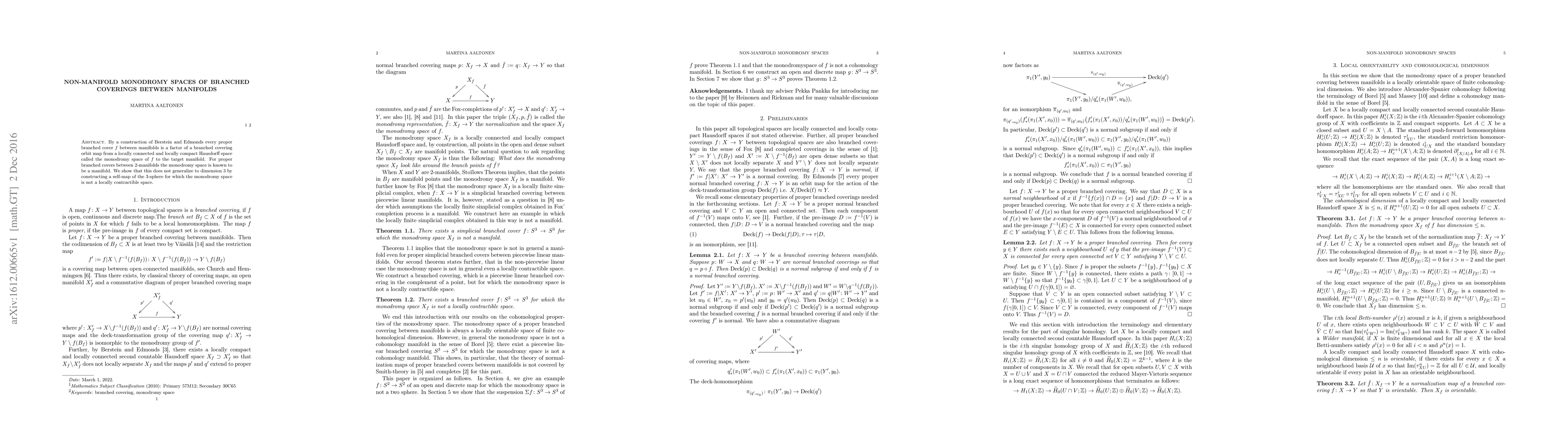 This paper demonstrates that the monodromy space of a proper branched cover between 3-manifolds need not be a manifold, contrasting with the 2-manifold case where it is always a manifold. It constructs a specific self-map of the 3-sphere with a non-locally contractible monodromy space.