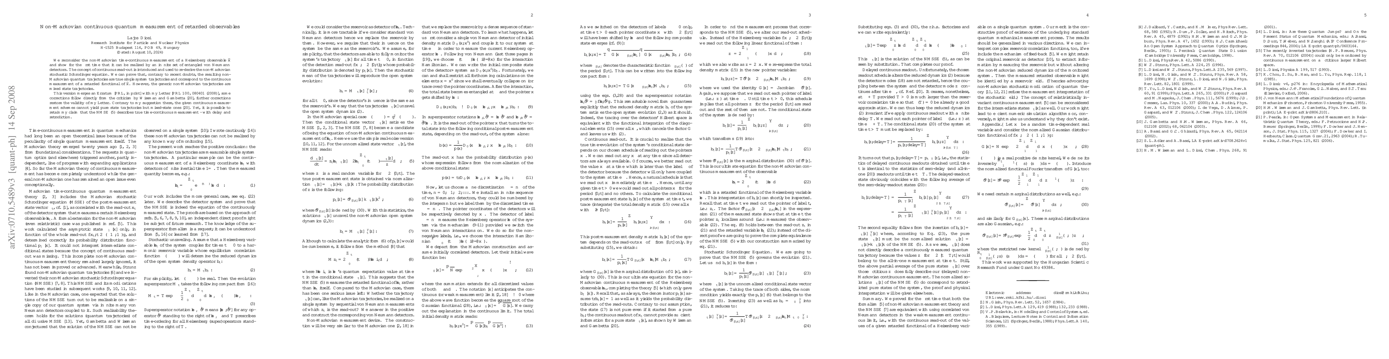 The research reconsiders non-Markovian time-continuous measurement of a Heisenberg observable x using an infinite set of entangled von Neumann detectors, re-deriving the non-Markovian stochastic Schrödinger equation (NMSSE) and proving the existence of true single-system quantum trajectories corresponding to the continuous measurement of a retarded functional of x.