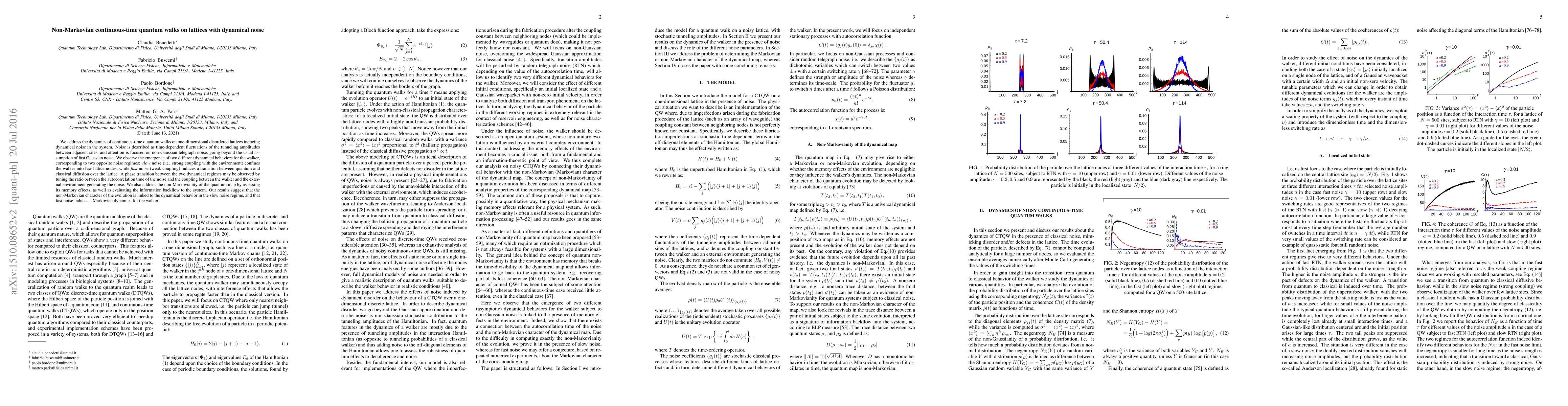 We address the dynamics of continuous-time quantum walks on one-dimensional disordered lattices inducing dynamical noise in the system. Noise is described as time-dependent fluctuations of the tunneling amplitudes between adjacent sites, and attention is focused on non-Gaussian telegraph noise, going beyond the usual assumption of fast Gaussian noise. We observe the emergence of two different dynamical behaviors for the walker, corresponding to two opposite noise regimes: slow noise (i.e. strong coupling with the environment) confines the walker into few lattice nodes, while fast noise (weak coupling) induces a transition between quantum and classical diffusion over the lattice. A phase transition between the two dynamical regimes may be observed by tuning the ratio between the autocorrelation time of the noise and the coupling between the walker and the external environment generating the noise. We also address the non-Markovianity of the quantum map by assessing its memory effects, as well as evaluating the information backflow to the system. Our results suggest that the non-Markovian character of the evolution is linked to the dynamical behavior in the slow noise regime, and that fast noise induces a Markovian dynamics for the walker.