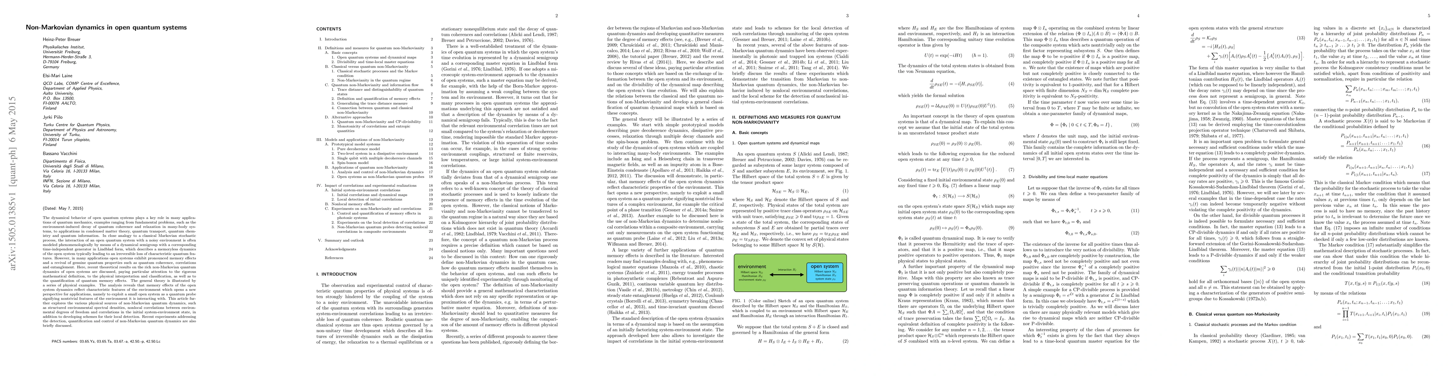 This paper explores non-Markovian dynamics in open quantum systems, highlighting memory effects that revive quantum coherence and correlations, and discusses their physical sources and implications for quantum information and probe applications. It also examines experimental methods for detecting and quantifying these dynamics.
