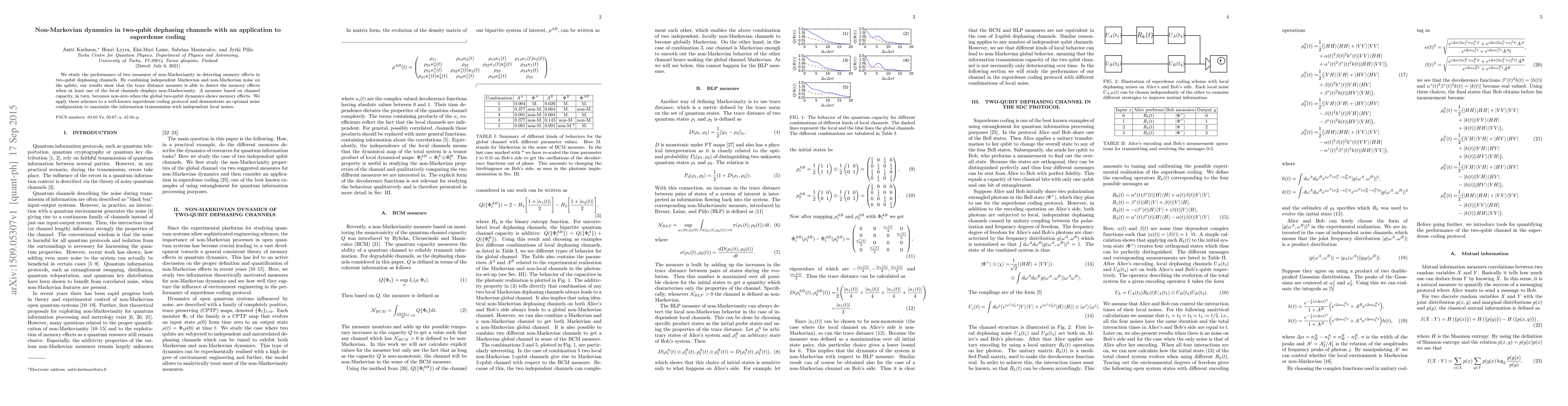 This paper investigates non-Markovian dynamics in two-qubit dephasing channels, showing that trace distance and channel capacity measures can detect memory effects. It applies these findings to superdense coding to identify optimal noise configurations for maximizing information transmission.