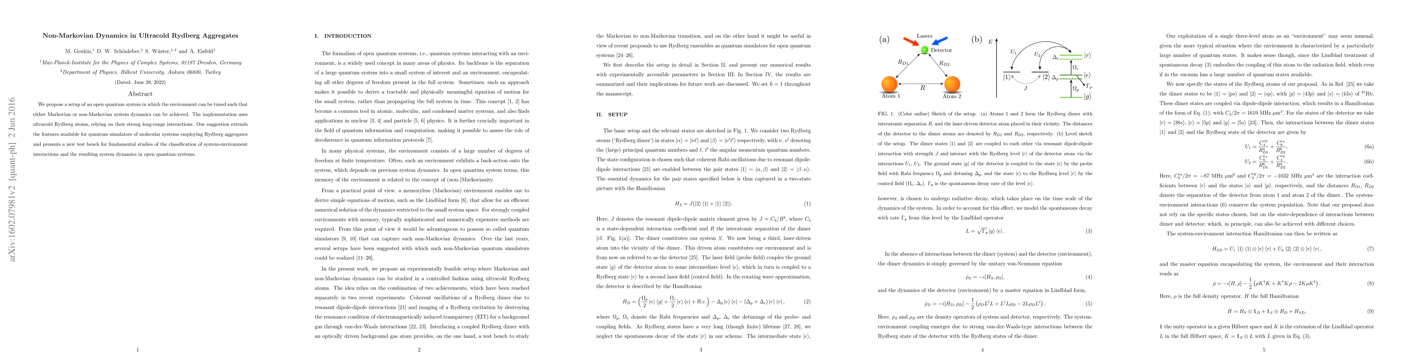 The research proposes a setup using ultracold Rydberg atoms to tune between Markovian and non-Markovian system dynamics, leveraging their strong long-range interactions for quantum simulation and fundamental studies.