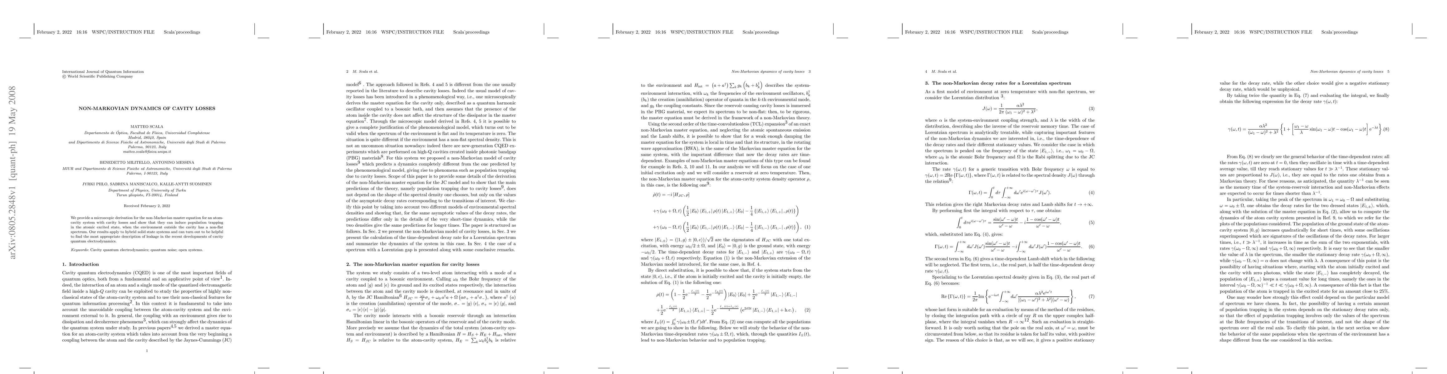 Researchers derive a non-Markovian master equation for an atom-cavity system with losses, showing that these losses can cause population trapping in the atomic excited state. This finding is relevant to hybrid solid-state systems and could aid in understanding leakage in cavity quantum electrodynamics.
