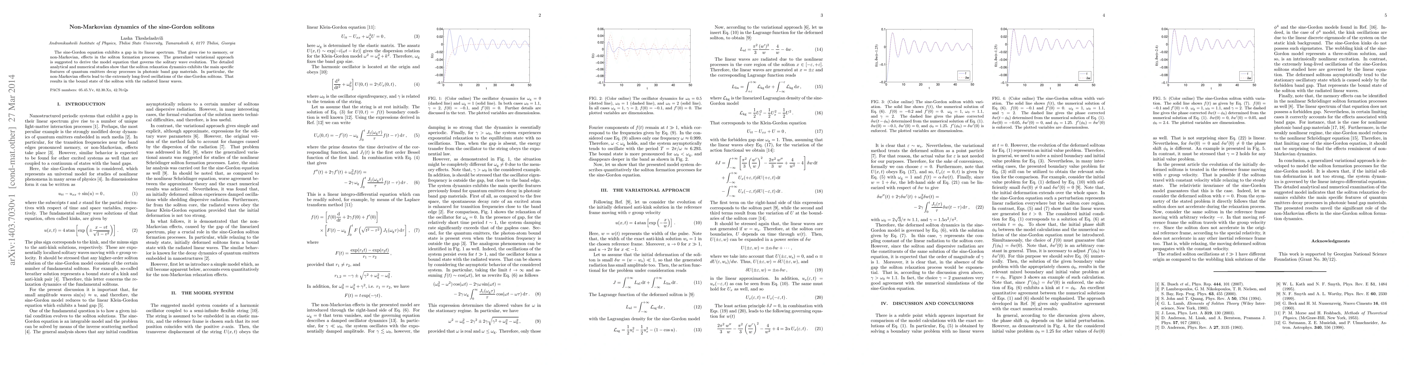 This paper explores the non-Markovian dynamics in the formation of sine-Gordon solitons, revealing memory effects due to the gap in the linear spectrum. Utilizing a generalized variational approach, the study finds that soliton relaxation dynamics mirrors quantum emitter decay in photonic band gap materials, leading to exceptionally long-lived oscillations and bound states with radiated waves.