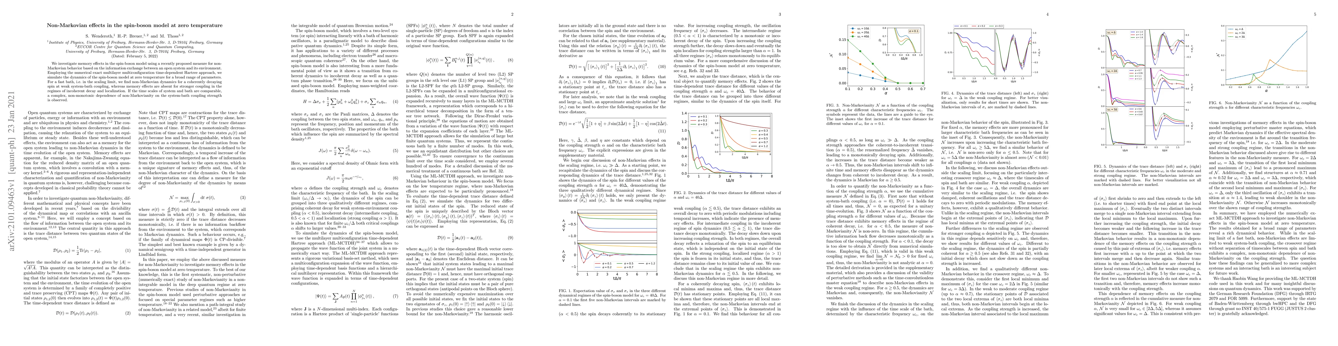 This paper examines memory effects in the spin-boson model at zero temperature using a new measure for non-Markovian dynamics. It finds that non-Markovian behavior occurs at weak system-bath coupling for a fast bath, while memory effects are absent at stronger coupling. When system and bath time scales are comparable, non-Markovianity shows a complex, non-monotonic dependence on coupling strength.
