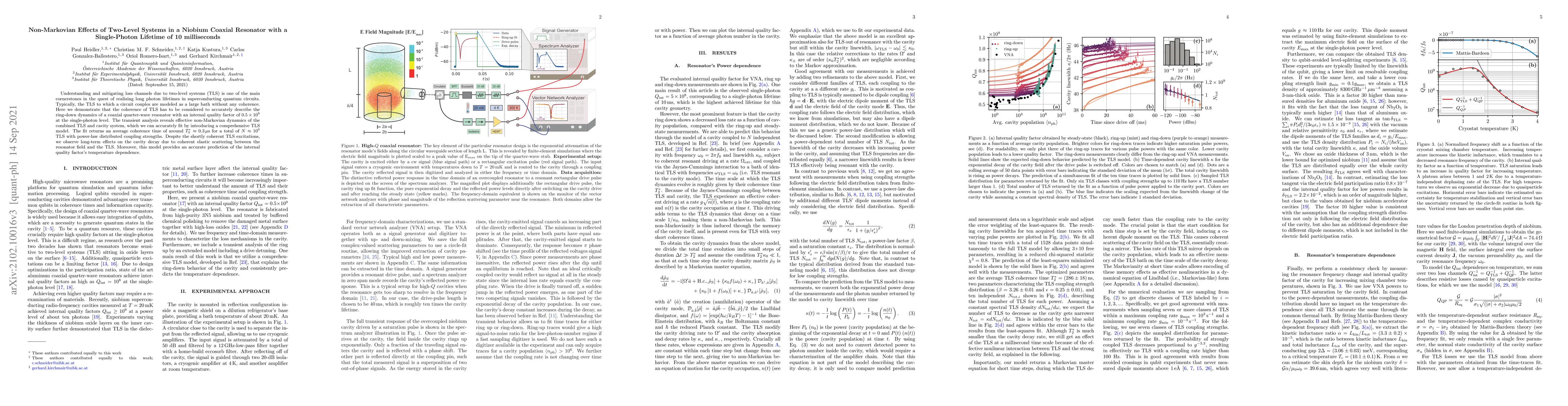 This paper investigates the non-Markovian effects of two-level systems (TLS) in a niobium coaxial resonator, revealing that TLS coherence significantly impacts the resonator's decay dynamics. The study finds long-term effects on the cavity decay due to coherent elastic scattering, despite short TLS coherence times, and provides an accurate model for predicting the internal quality factor's temperature dependence.