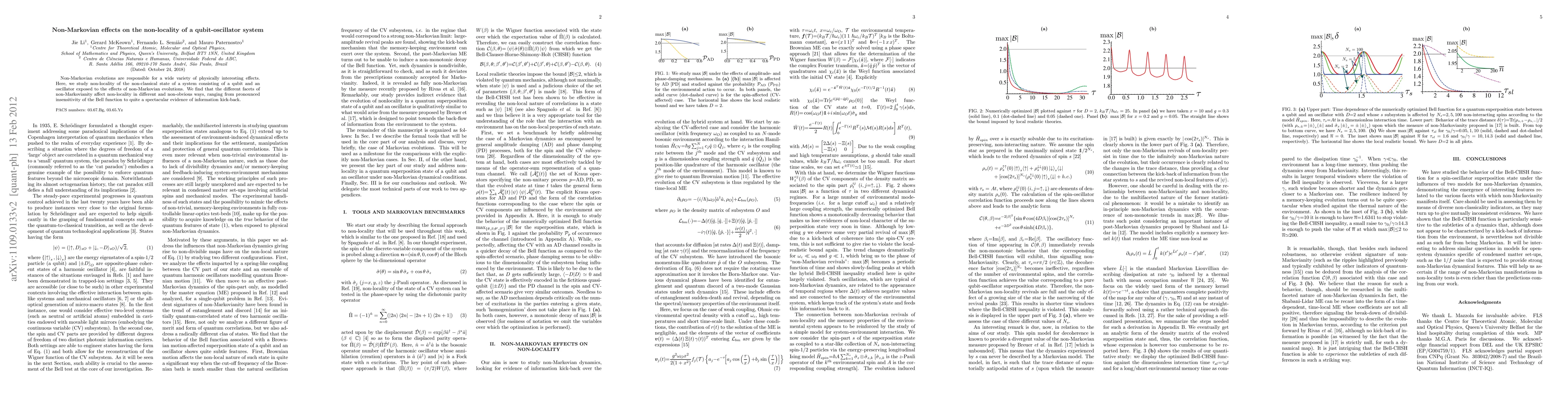 This paper investigates how non-Markovian evolutions influence the non-locality of a qubit-oscillator system, revealing that various aspects of non-Markovianity can lead to unexpected effects on non-local correlations, including both insensitivity and significant information feedback.