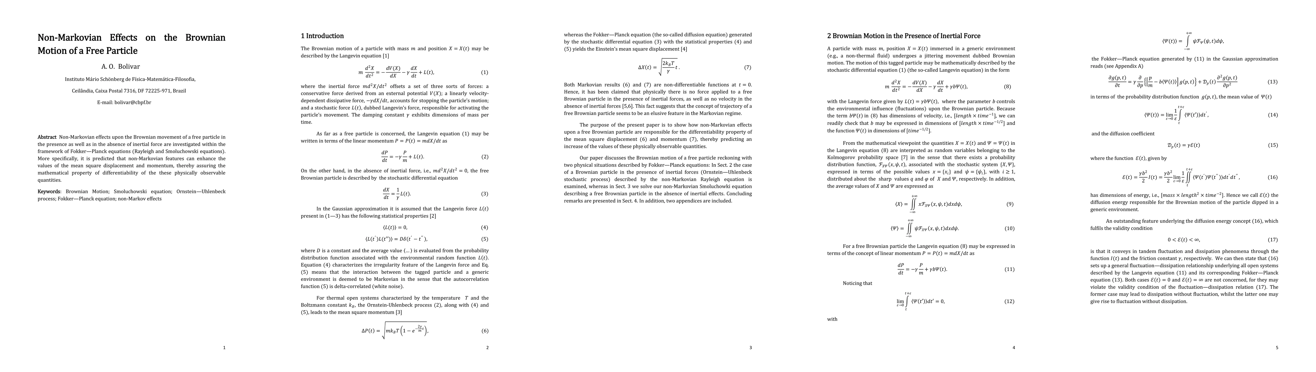Non-Markovian effects upon the Brownian movement of a free particle in the presence as well as in the absence of inertial force are investigated within the framework of Fokker-Planck equations (Rayleigh and Smoluchowski equations). More specifically, it is predicted that non-Markovian features can enhance the values of the mean square displacement and momentum, thereby assuring the mathematical property of differentiability of the these physically observable quantities.