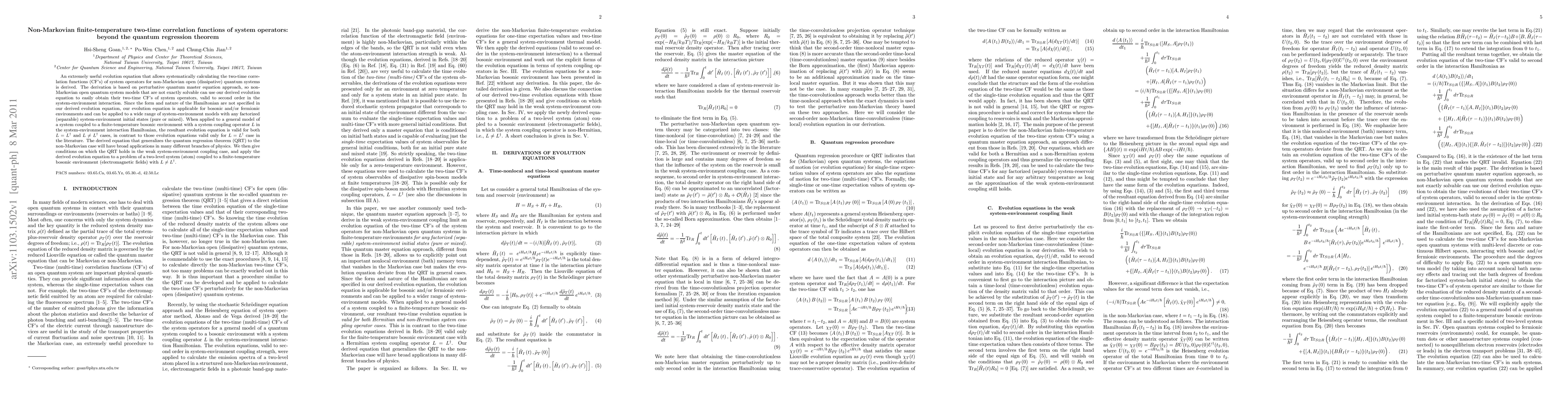 An extremely useful evolution equation that allows systematically calculating the two-time correlation functions (CF's) of system operators for non-Markovian open (dissipative) quantum systems is derived. The derivation is based on perturbative quantum master equation approach, so non-Markovian open quantum system models that are not exactly solvable can use our derived evolution equation to easily obtain their two-time CF's of system operators, valid to second order in the system-environment interaction. Since the form and nature of the Hamiltonian are not specified in our derived evolution equation, our evolution equation is applicable for bosonic and/or fermionic environments and can be applied to a wide range of system-environment models with any factorized (separable) system-environment initial states (pure or mixed). When applied to a general model of a system coupled to a finite-temperature bosonic environment with a system coupling operator L in the system-environment interaction Hamiltonian, the resultant evolution equation is valid for both L = L^+ and L \neq L^+ cases, in contrast to those evolution equations valid only for L = L^+ case in the literature. The derived equation that generalizes the quantum regression theorem (QRT) to the non-Markovian case will have broad applications in many different branches of physics. We then give conditions on which the QRT holds in the weak system-environment coupling case, and apply the derived evolution equation to a problem of a two-level system (atom) coupled to a finite-temperature bosonic environment (electromagnetic fields) with L \neq L^+.
