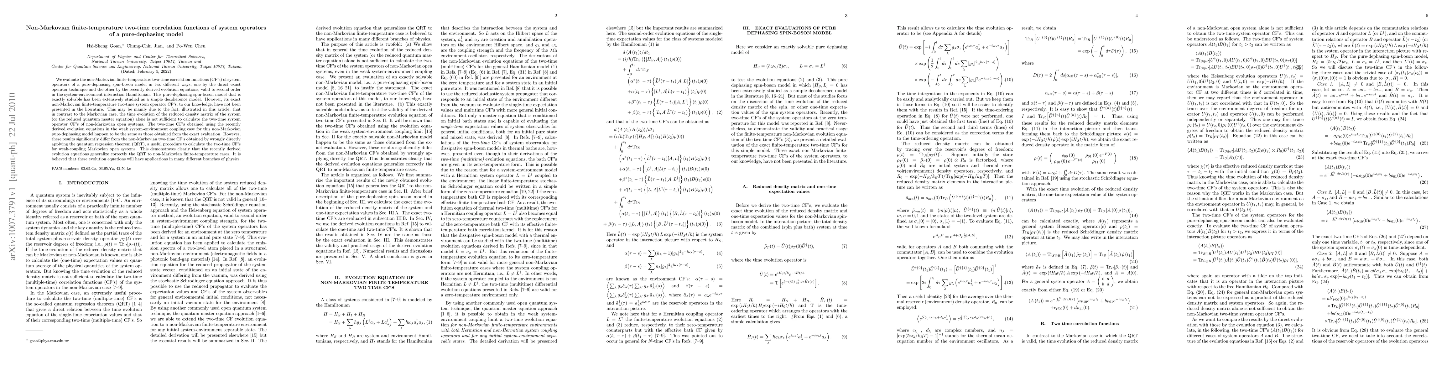 This paper evaluates non-Markovian finite-temperature two-time correlation functions of a pure-dephasing spin-boson model using exact operator techniques and evolution equations. It demonstrates that these evolution equations correctly generalize the quantum regression theorem to non-Markovian cases.