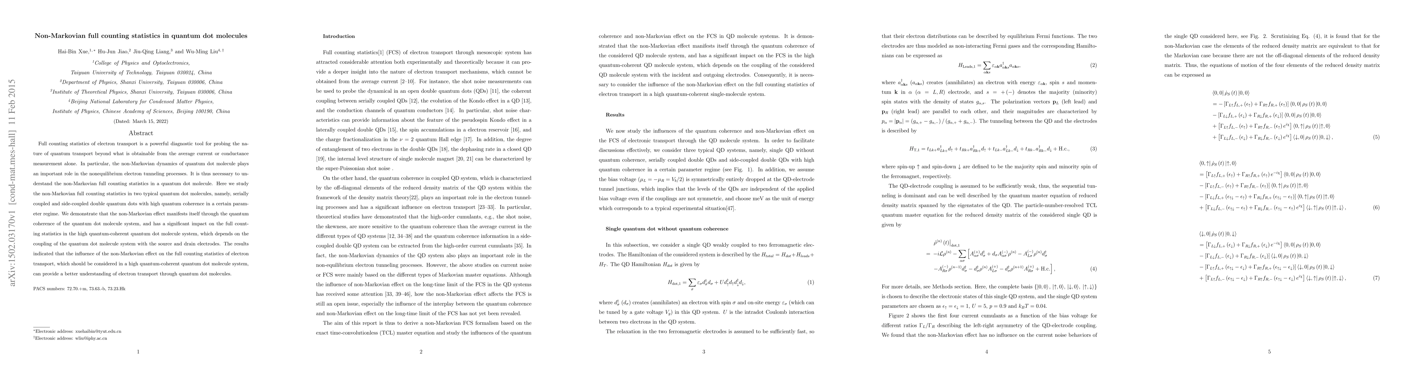 This paper investigates non-Markovian full counting statistics in high quantum coherence quantum dot molecules, showing that non-Markovian effects significantly impact the statistics through quantum coherence, depending on the system's coupling with source and drain electrodes. This provides deeper insights into electron transport in quantum dot molecules.
