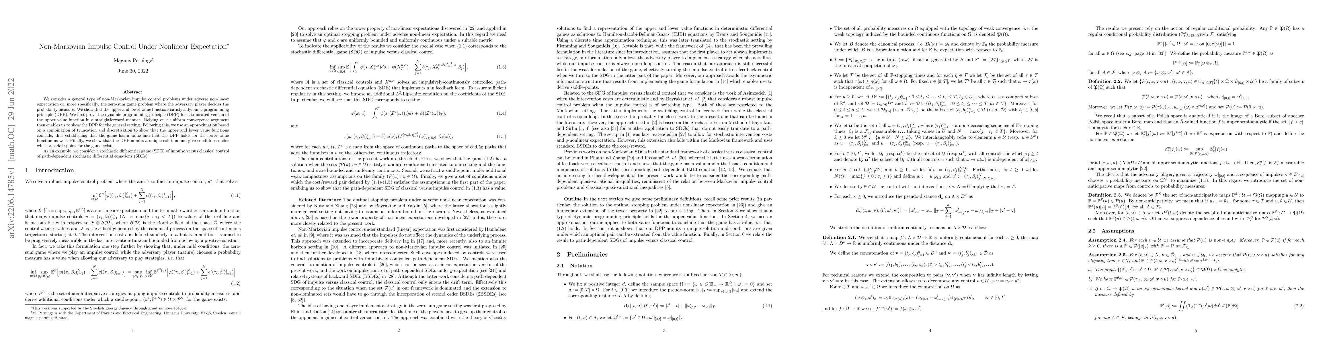 This paper explores non-Markovian impulse control problems under non-linear expectations, proving a dynamic programming principle (DPP) for upper and lower value functions. It demonstrates the DPP's applicability through a stochastic differential game example, showing the existence of a unique solution and saddle-point conditions.
