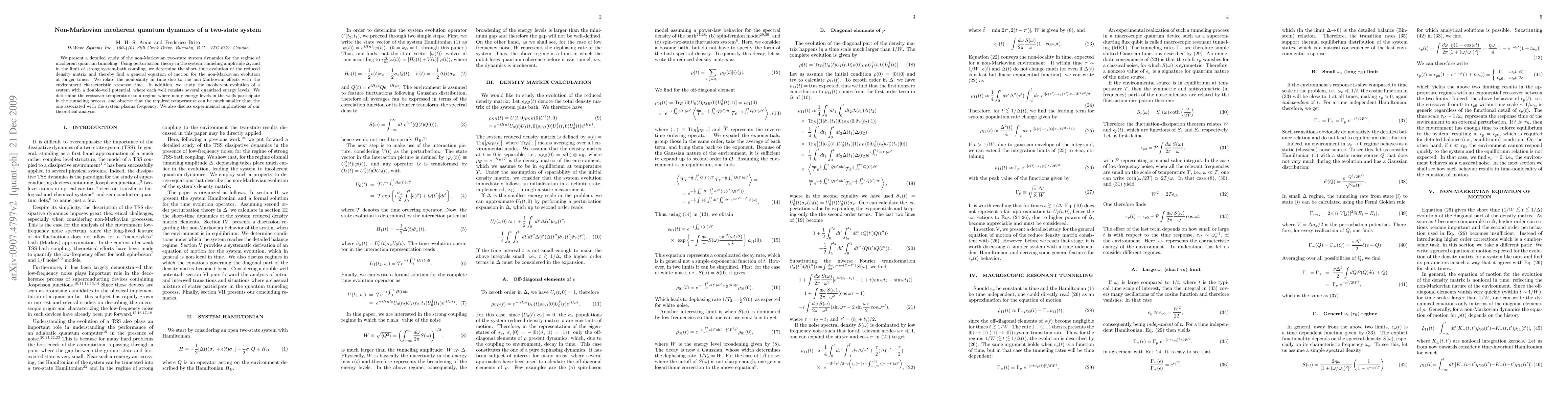 This paper investigates non-Markovian dynamics in a two-state system undergoing incoherent quantum tunneling, deriving a general equation of motion that accounts for the system's interaction with its environment. It also explores the crossover temperature for multi-level tunneling in a double-well potential, revealing that it can be significantly lower than expected.