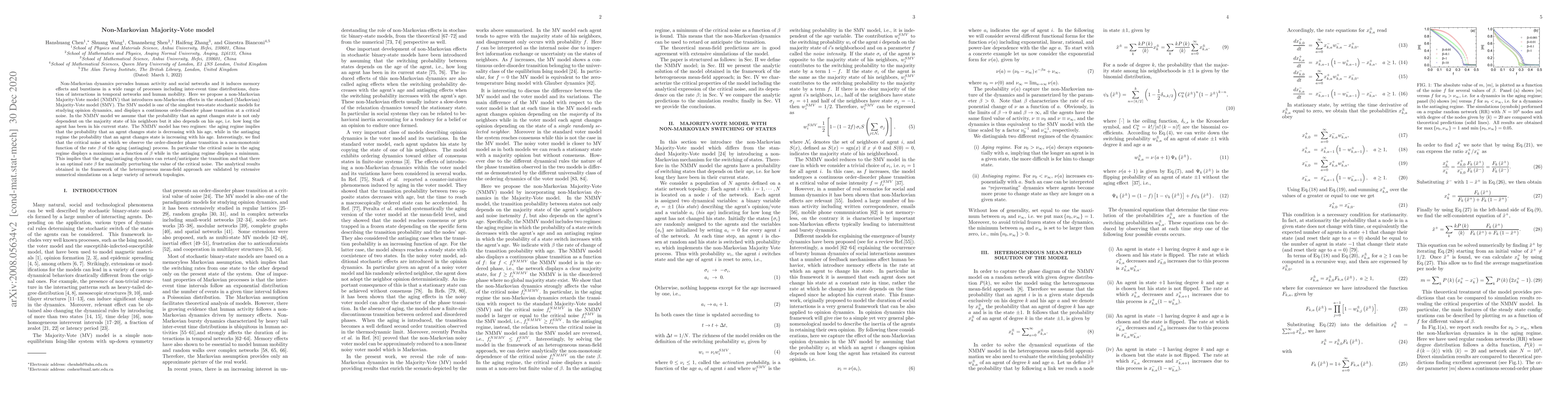 The research introduces the Non-Markovian Majority-Vote (NMMV) model, which extends the standard Majority-Vote (SMV) model by incorporating age-dependent activation probabilities, captured by the function ν(a). The model is analyzed using the heterogeneous mean-field approach and validated through extensive numerical simulations on various network topologies.
