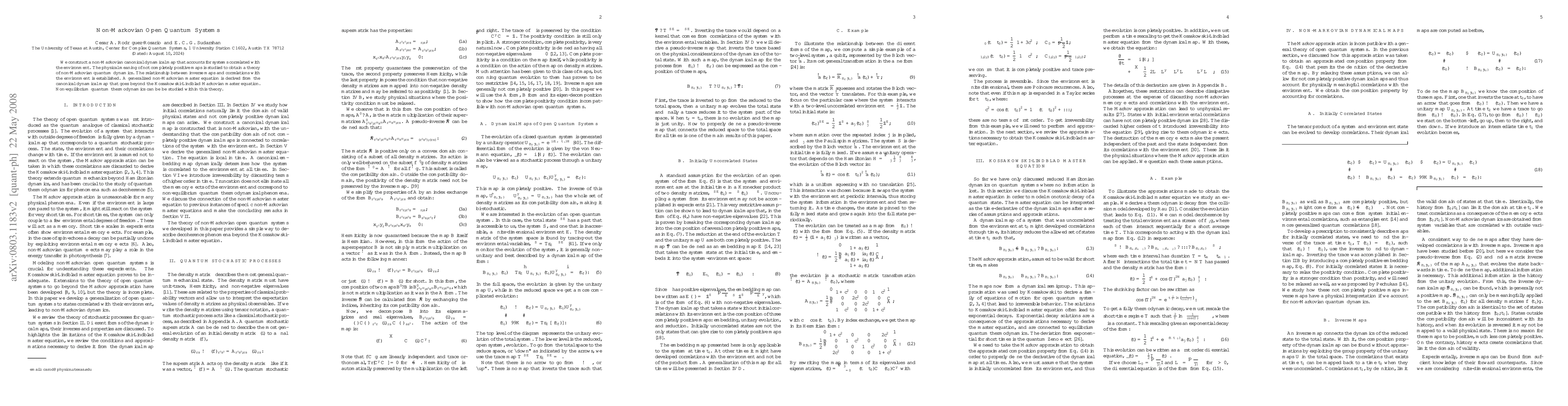 We construct a non-Markovian canonical dynamical map that accounts for systems correlated with the environment. The physical meaning of not completely positive maps is studied to obtain a theory of non-Markovian quantum dynamics. The relationship between inverse maps and correlations with the environment is established. A generalized non-Markovian master equation is derived from the canonical dynamical map that goes beyond the Kossakowski-Lindblad Markovian master equation. Non-equilibrium quantum thermodynamics can be be studied within this theory.