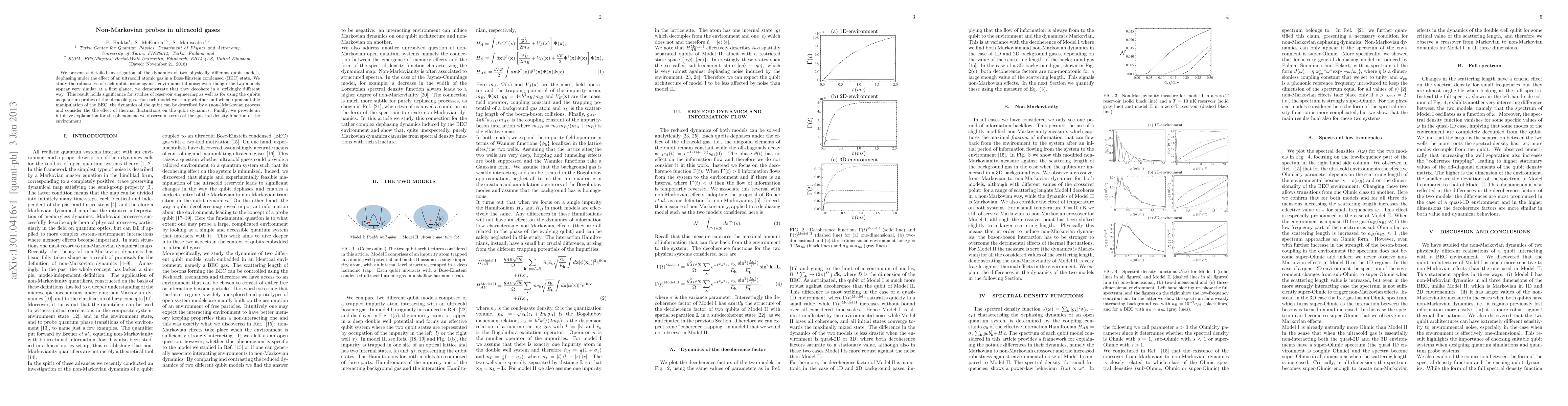 This paper investigates the dynamics of two qubit models in an ultracold atomic gas, revealing distinct decoherence behaviors despite initial similarities. The study explores the impact of Bose-Einstein condensate manipulation and thermal fluctuations on qubit dynamics, providing insights into reservoir engineering and the use of qubits as quantum probes.