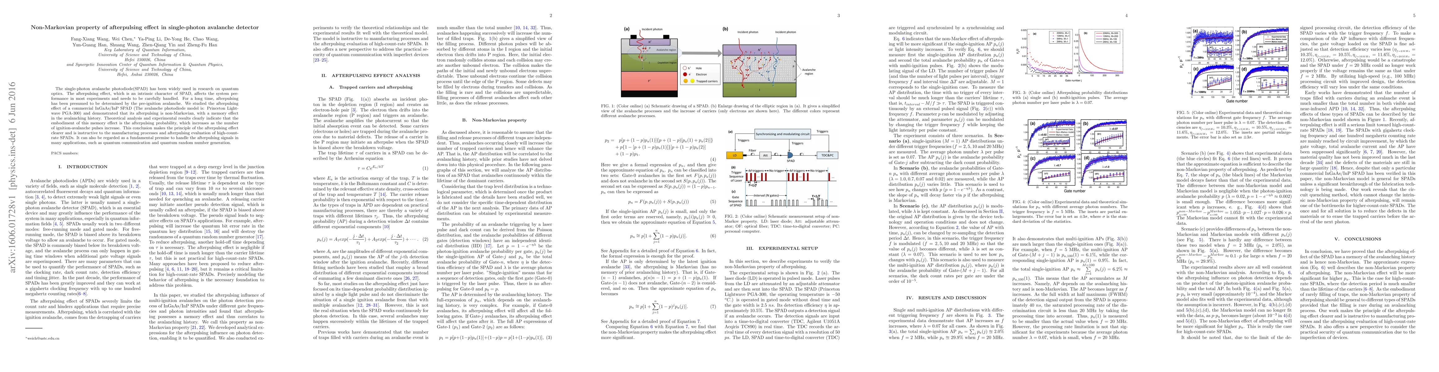 This paper investigates the non-Markovian nature of the afterpulsing effect in a commercial InGaAs/InP SPAD, revealing a memory effect in the avalanching history that influences afterpulsing probability. This insight is crucial for improving SPAD performance and handling afterpulsing in quantum communication and quantum random number generation.