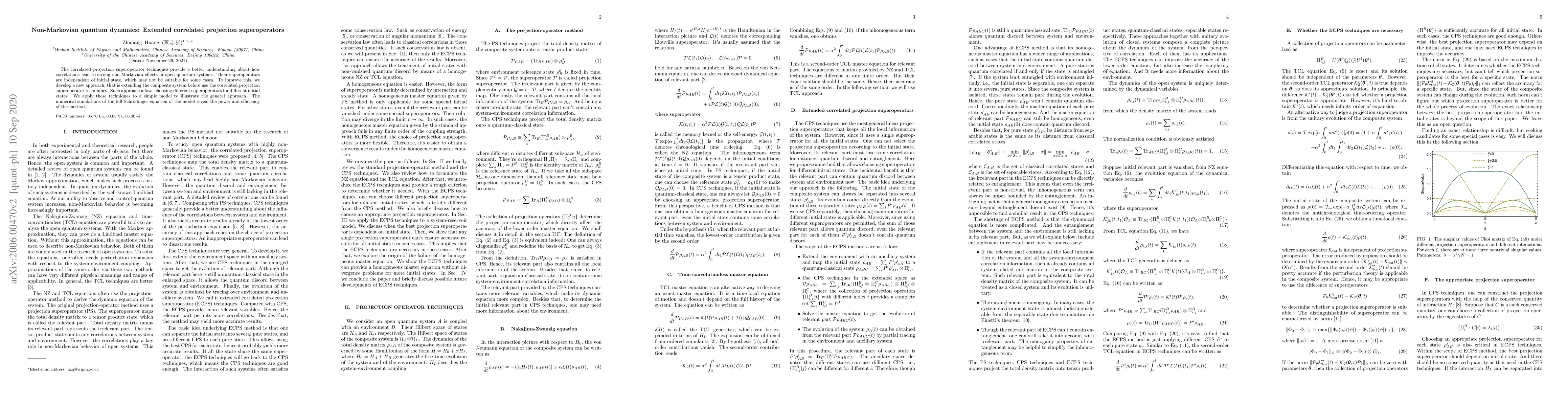 This paper introduces an extended correlated projection superoperator technique to better capture non-Markovian effects in open quantum systems, allowing for different superoperators based on initial state conditions. Numerical simulations demonstrate the method's effectiveness in a simple model.