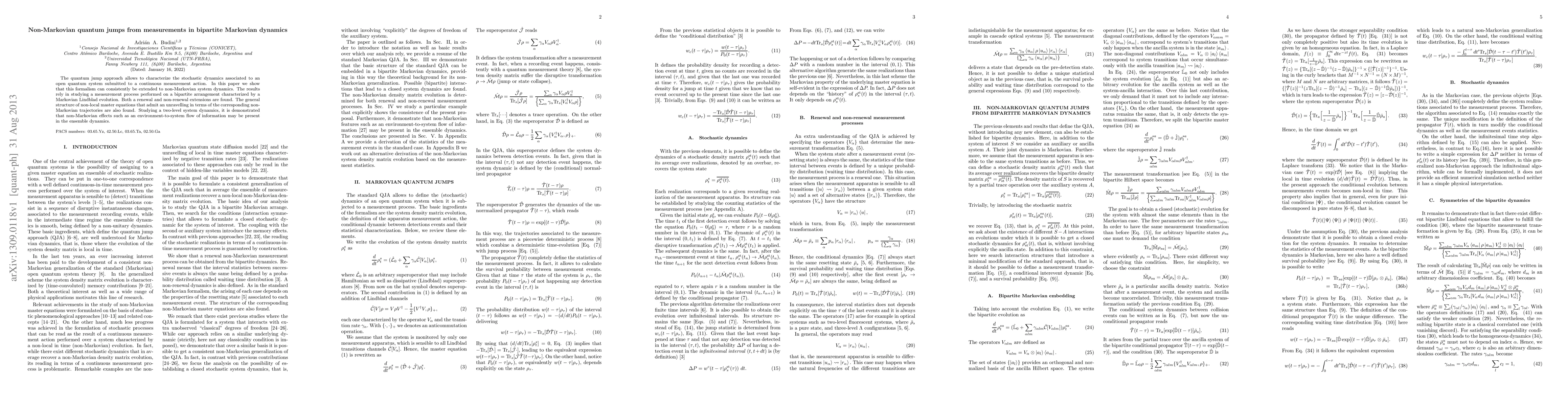 This paper extends the quantum jump approach to non-Markovian dynamics by analyzing a bipartite system undergoing Markovian Lindblad evolution, revealing both renewal and non-renewal extensions. Non-local master equations are derived, demonstrating non-Markovian effects like information flow from environment to system in two-level system dynamics.