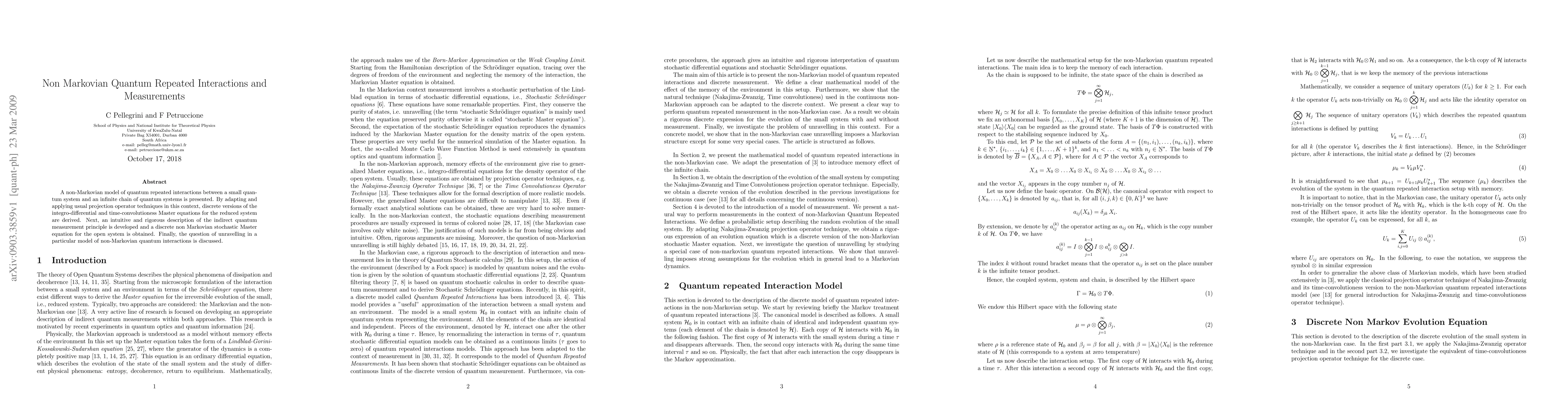 This paper develops a non-Markovian model for quantum interactions and measurements, deriving discrete integro-differential equations and a stochastic Master equation to describe the open system. It also explores unraveling in non-Markovian quantum processes.