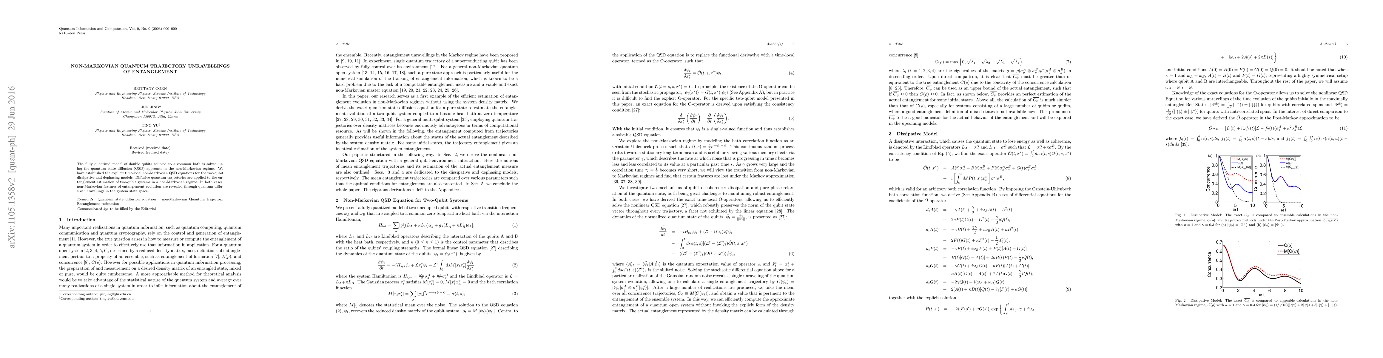 This paper utilizes the quantum state diffusion approach to solve a model of two qubits coupled to a common bath in the non-Markovian regime, revealing the non-Markovian dynamics of entanglement through diffusive quantum trajectories. The study establishes explicit time-local non-Markovian equations for qubit dissipative and dephasing models.