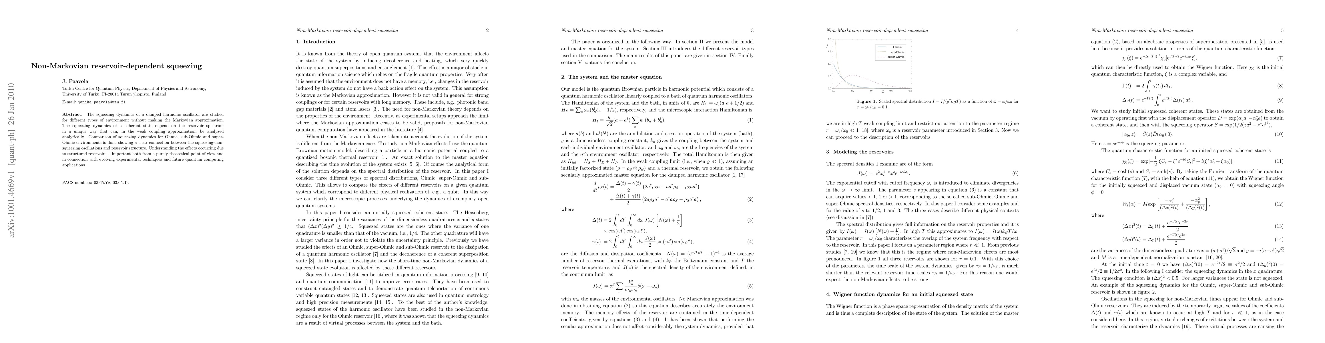 This paper investigates the non-Markovian dynamics of squeezing in a damped harmonic oscillator across various environments, revealing unique reservoir-dependent effects. It highlights the connection between squeezing oscillations and the structure of the reservoir, emphasizing the theoretical and practical implications for quantum computing applications.