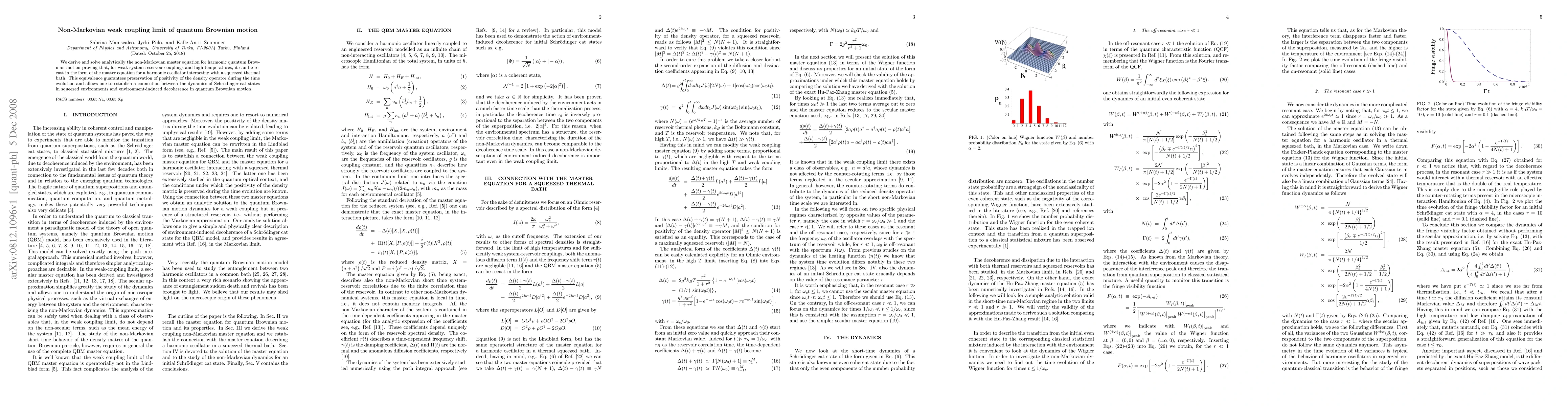 This paper derives and solves the non-Markovian master equation for quantum Brownian motion, showing it can be reformulated for weak couplings and high temperatures as a master equation for a harmonic oscillator with a squeezed thermal bath, ensuring density operator positivity and linking Schr\"odinger cat states dynamics to decoherence.