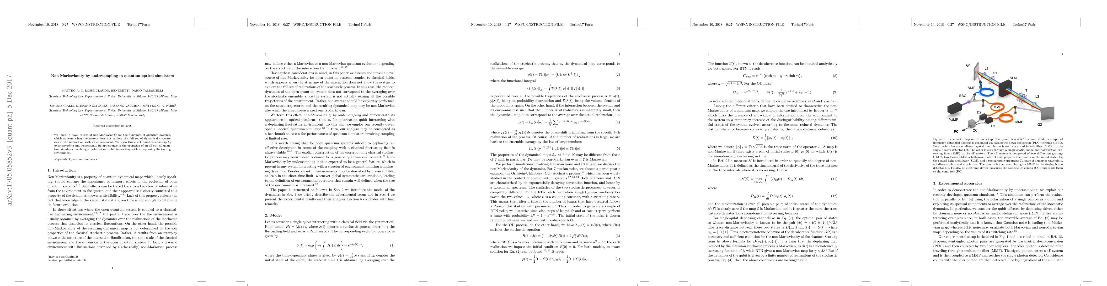 This paper introduces "non-Markovianity by undersampling" as a new phenomenon in quantum systems where incomplete exploration of dynamical trajectories due to undersampling leads to non-Markovian behavior. The effect is demonstrated in an all-optical quantum simulator with a polarization qubit interacting with a fluctuating environment.