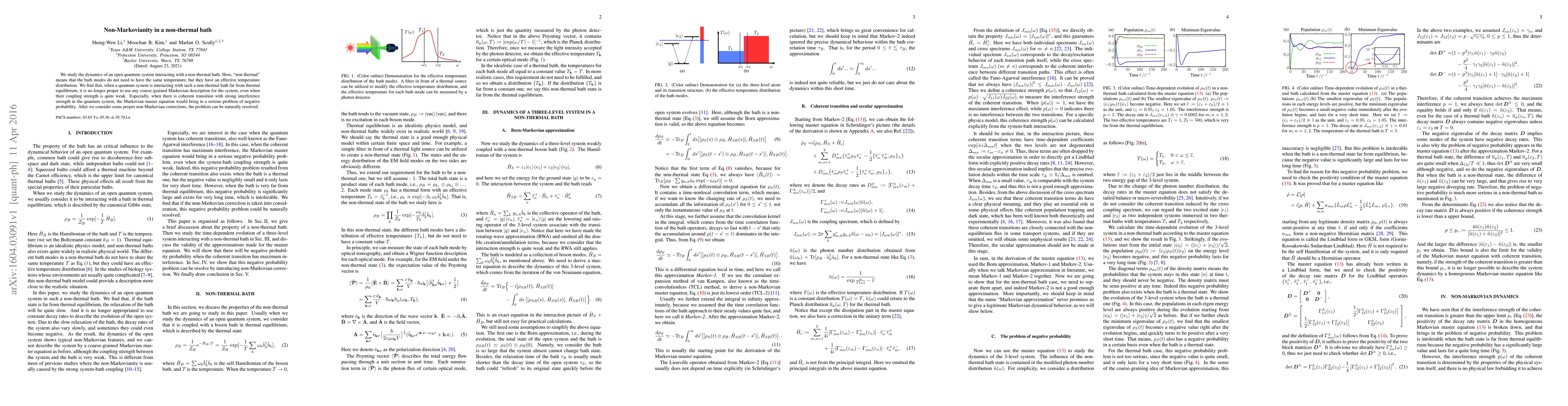 We study the dynamics of an open quantum system interacting with a non-thermal bath. Here, "non-thermal" means that the bath modes do not need to have the same temperature, but they have an effective temperature distribution. We find that, when a quantum system is interacting with such a non-thermal bath far from thermal equilibrium, it is no longer proper to use any coarse-grained Markovian description for the system, even when their coupling strength is quite weak. Especially, when there is coherent transition with strong interference strength in the quantum system, the Markovian master equation would bring in a serious problem of negative probability. After we consider some proper non-Markovian corrections, the problem can be naturally resolved.